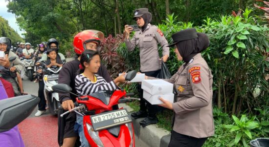 Pontianak, Media Kalbar Menjelang waktu berbuka puasa, personel Polisi Wanita Polda Kalbar melaksanakan aksi serentak pembagian ratusan paket takjil gratis kepada masyarakat