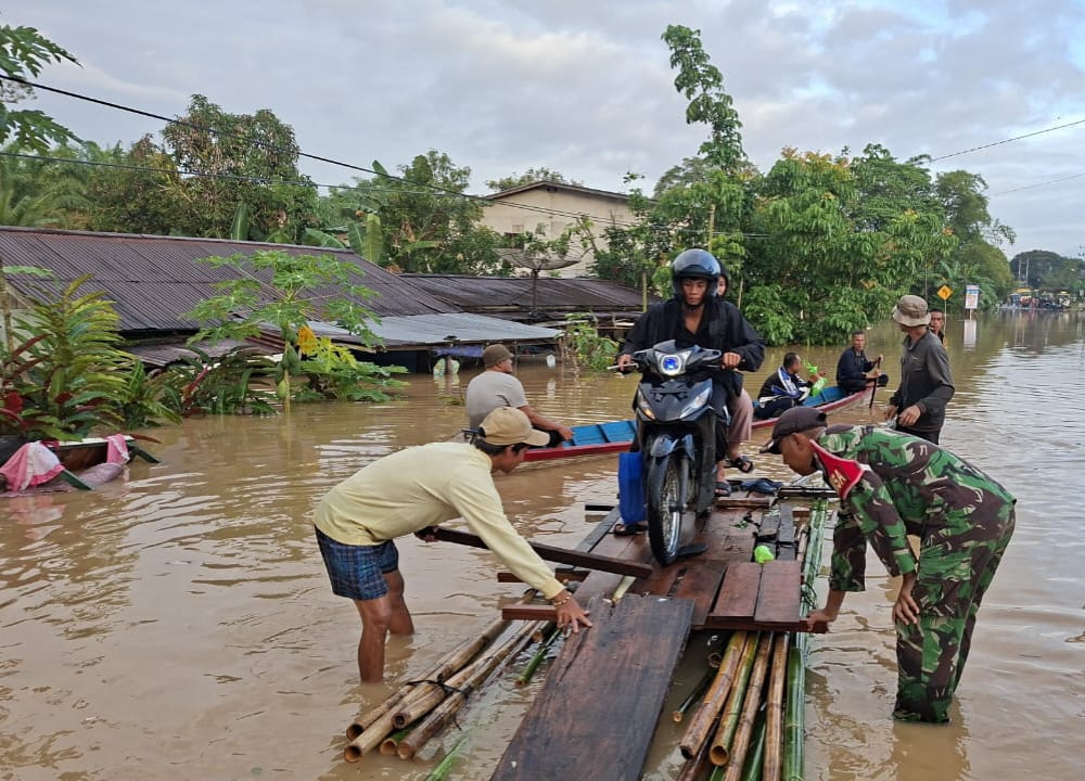 “Akses sementara hanya bisa dilalui kendaraan roda dua, itu pun harus menggunakan bantuan rakit dan perahu milik warga setempat,” ujar Dandim 1204/Sanggau dalam keterangannya.