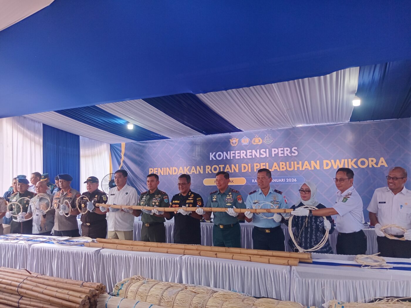 Hal ini disampaikan Kepala Kanwil DJBC Kalimantan Bagian Barat, Muhamad Lukman dalam konferensi pers penindakan rotan yang bertempat di Pelabuhan Dwikora Pontianak, Rabu (21/1/2026).