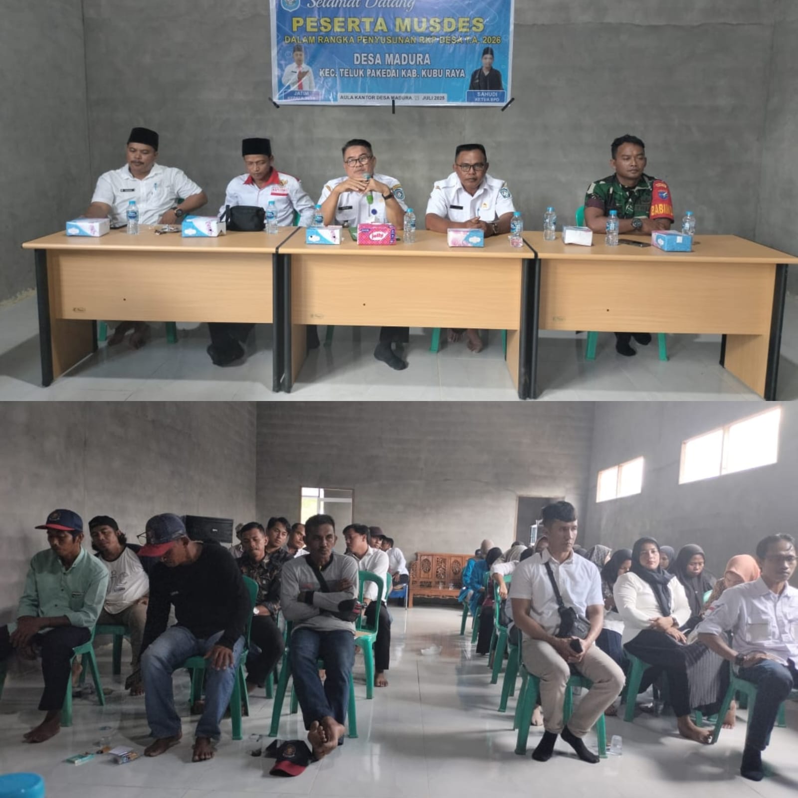 Badan Permusyawaratan Desa (BPD) Madura bersama Pemerintah Desa Madura, Kecamatan Teluk Pakedai, Kabupaten Kubu Raya, menggelar musyawarah penyusunan Rencana Kerja Pemerintah Desa (RKPDes) Tahun Anggaran 2026. Kegiatan ini berlangsung di ruang kantor desa yang baru, Rabu (23/7/2025), dengan suasana yang hangat dan partisipatif.