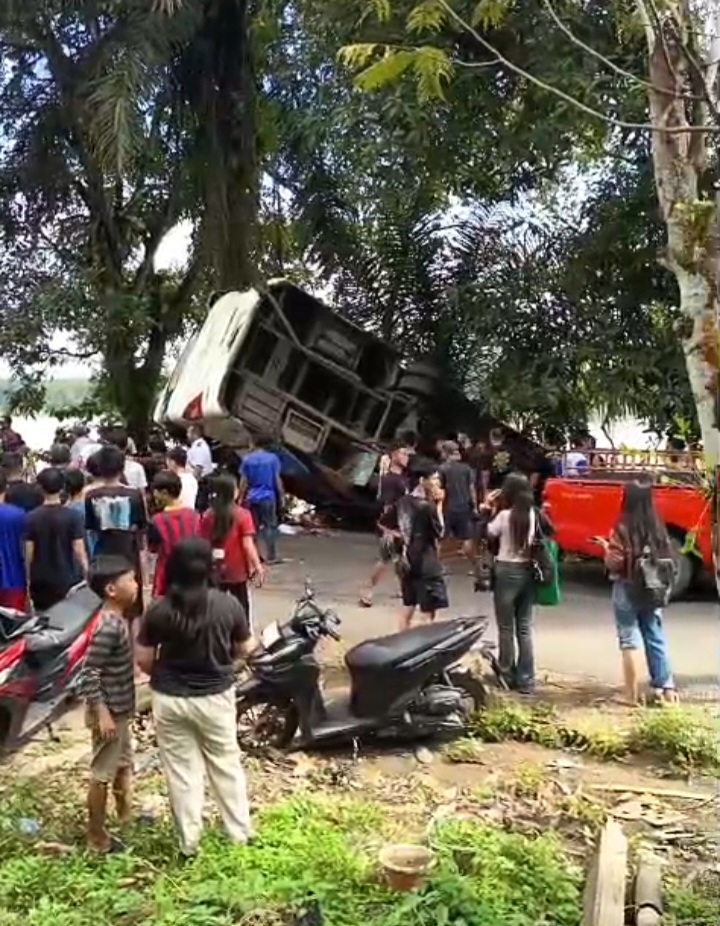 Dalam video yang diterima redaksi dan beredar di beberapa grup Media sosial bahwa posisi Bus Damri terjungkal ke tepi jalan hampir masuk jurang, dikabarkan ada korban jiwa, salah satu juga ada yang sampai putus tangan dan terluka.