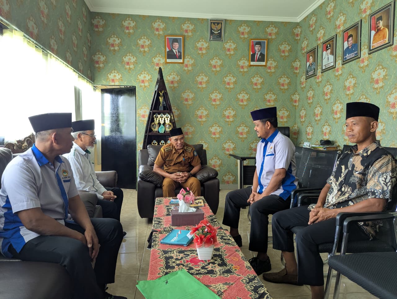 Camat Rasau Jaya, Kabupaten Kubu Raya, Supratman menerima audiensi jajaran Pimpinan Cabang (PC) LDII Kecamatan Rasau Jaya di ruang kerjanya, Senin (2/3/2026).