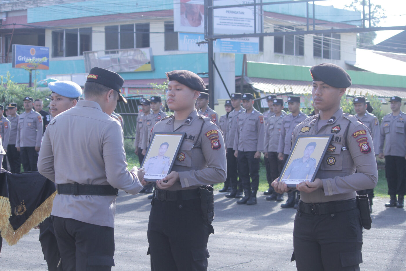Dua polisi yang dipecat adalah Bripka F dan Briptu IA. Upacara pemberhentian dilakukan secara In Absentia dengan dilakukan pencoretan terhadap photo kedua anggota yang diberhentikan tidak dengan hormat.
