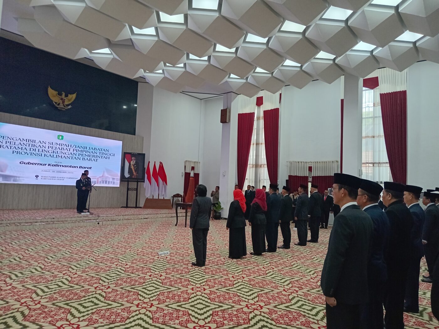 Gubernur Kalbar H. Ria Norsan melantik Pejabat Strategis Pimpinan Tinggi Pratama di lingkungan Pemerintah Provinsi Kalimantan Barat hasil open bidding dan rotasi jabatan di Balai Petitih Kantor Gubernur Kalbar, Jumat (30/1).