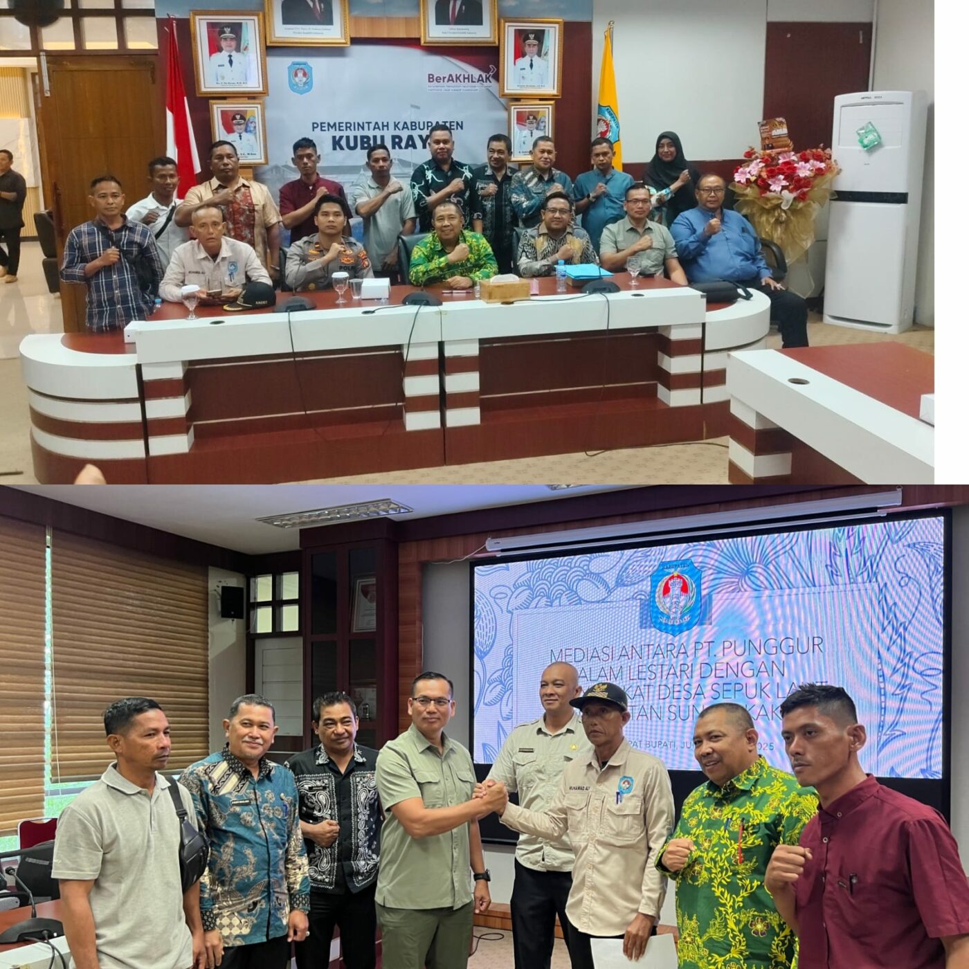 Pemerintah Kabupaten Kubu Raya kembali memediasi penyelesaian persoalan kompensasi lahan dan pembangunan kebun plasma antara masyarakat Desa Sepuk Laut dan PT Punggur Alam Lestari (PT PAL). Mediasi ini digelar pada Jumat (18/7/2025) pukul 08.00 WIB di ruang rapat Wakil Bupati, lantai 3 Gedung Pamong Praja 2.
