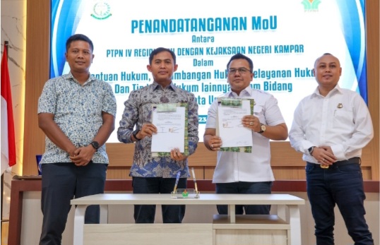 Penandatanganan MoU dilakukan oleh Corporate Secretary and Legal PTPN IV Regional III, Andiansyah Hamdani, bersama Kepala Kejaksaan Negeri Kampar, Sapta Putra. Sinergi ini dilakukan salah satunya sebagai langkah bersama menjaga keberlanjutan investasi dan mendukung percepatan program prioritas nasional.