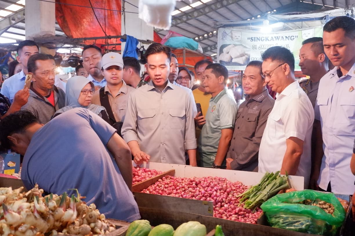 Dalam kesempatan tersebut, Wapres Gibran meninjau sejumlah kios bahan pokok serta berinteraksi dengan pedagang pasar.