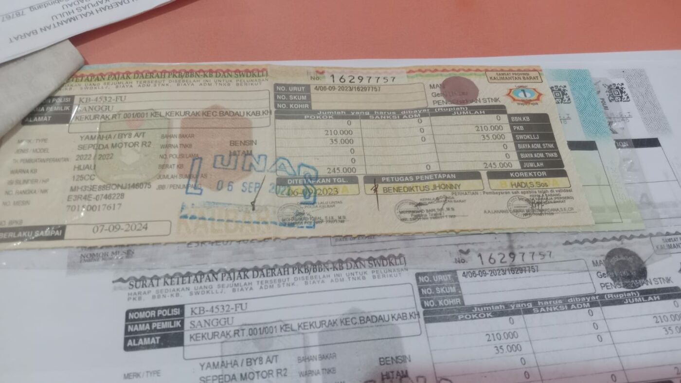 Sudah terjadi Kebakaran Surat STNK, BPKB KENDARAAN SEPEDA MOTOR, ATAS NAMA SANGGU