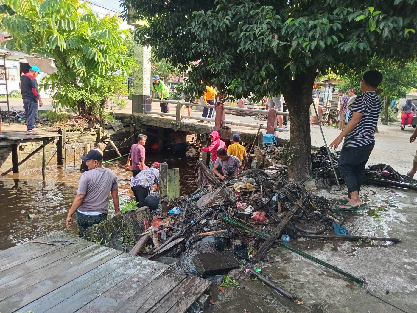 Kembali Kelurahan Siantan Tengah Kecamatan Pontianak Utara bersama para Tokoh Masyarakat, RW, RT dan warga melakukan gotong royong membersihkan Parit Parwasal, Minggu (10/8).