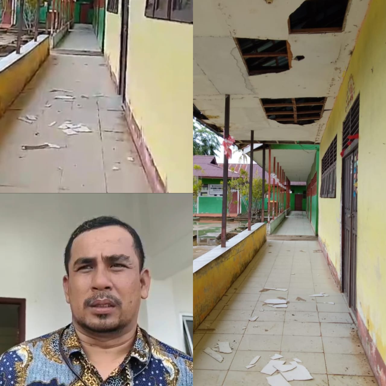 Kepala Desa Tanjung Saleh Tanggapi Viral Pemberitaan Plafon Teras SMP Negeri 4 Sungai Kakap yang Ambruk