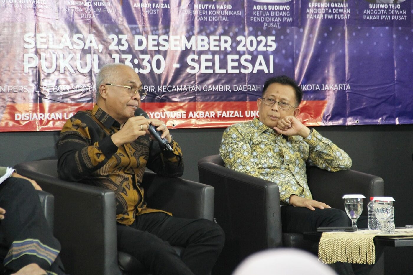 Hal itu disampaikan Munir dalam diskusi Kaleidoskop Media Massa 2025 yang digelar di Hall Dewan Pers, Jakarta, Selasa (23/12), sebagai bagian dari rangkaian Pra Hari Pers Nasional (HPN) 2026. Kegiatan tersebut merupakan kolaborasi PWI Pusat, Panitia HPN, dan Akbar Faisal Uncensored, serta disiarkan secara langsung melalui YouTube Akbar Faisal Uncensored.