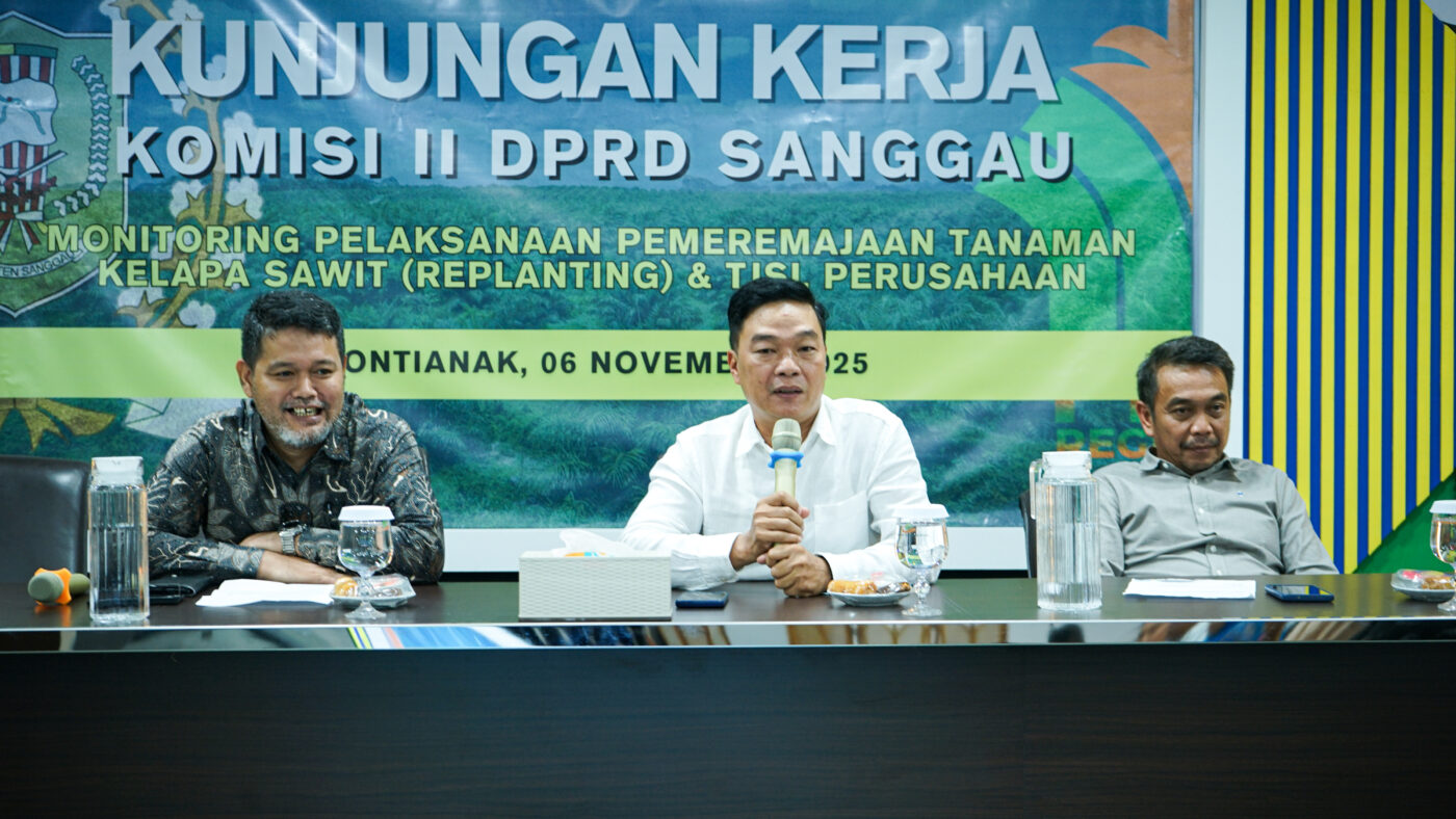 Komisi II DPRD Kabupaten Sanggau melakukan kunjungan kerja ke PTPN IV Regional V dalam rangka monitoring Program Peremajaan Kelapa Sawit Rakyat (PSR) dan pelaksanaan Tanggung Jawab Sosial dan Lingkungan (TJSL) tahun 2025, Kamis, (06/11/2025).