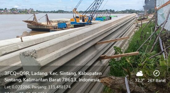 Sintang, Media Kalbar Proyek Pembangunan Perkuatan Tebing Sungai Melawi di Kecamatan Sintang, Kabupaten Sintang, yang dikerjakan di bawah Kementerian Pekerjaan Umum dan