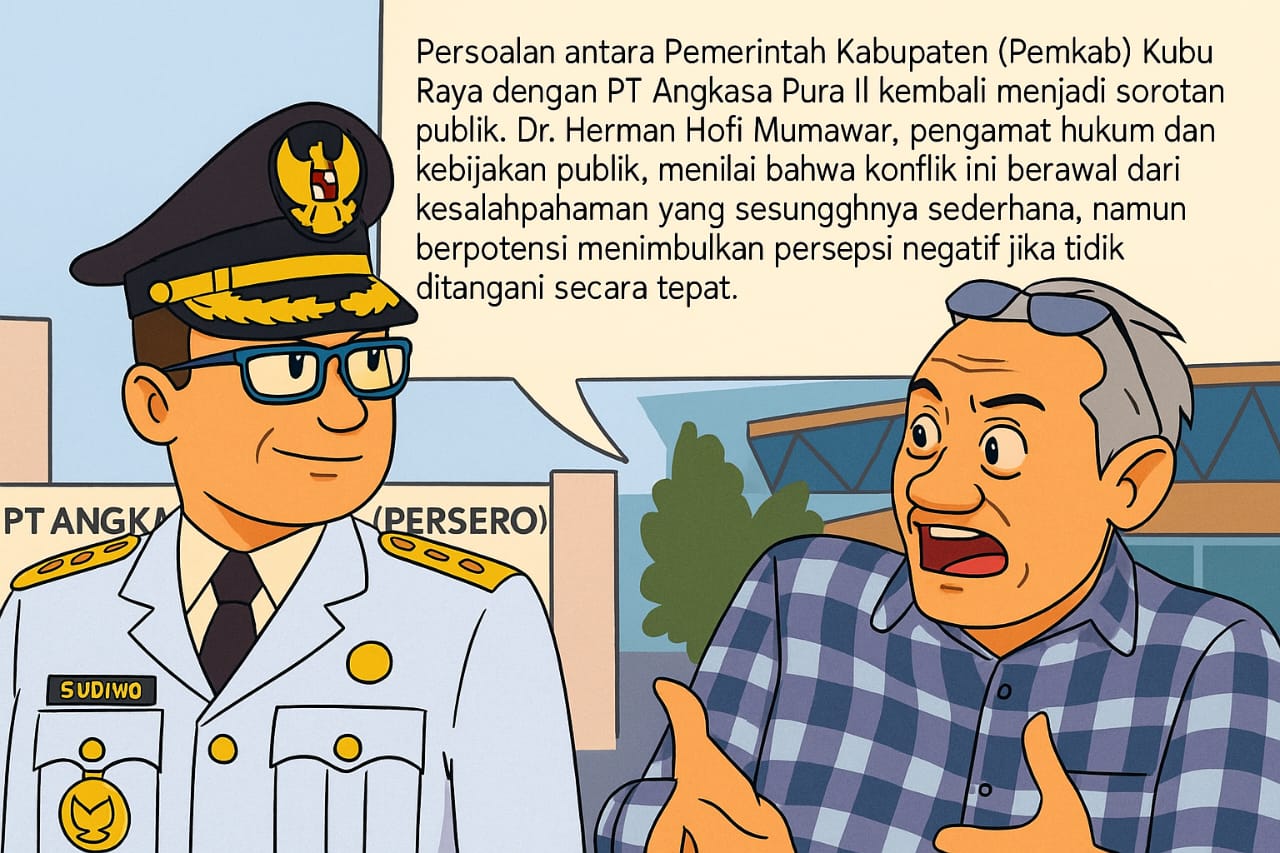 PONTIANAK, Media Kalbar – Persoalan antara Pemerintah Kabupaten (Pemkab) Kubu Raya dengan PT Angkasa Pura II kembali menjadi sorotan publik. Dr. Herman Hofi Mumawar, pengamat hukum dan kebijakan publik, menilai bahwa konflik ini berawal dari kesalahpahaman yang sesungguhnya sederhana, namun berpotensi menimbulkan persepsi negatif jika tidak ditangani secara tepat.