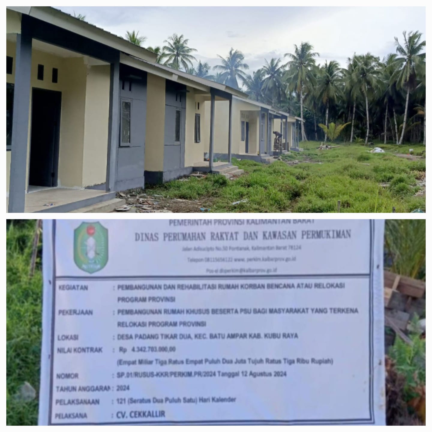 Sebelumnya dilaporkan bahwa terjadi masalah dalam pelaksanaan pembangunan 47 unit rumah khusus type 28 M2 di Desa Padang Tikar 2 Kab. Kubu Raya. Selaian tidak selesai pembangunan dalam masa kontrak juga terjadi sengketa lahan yang belum selesai dengan pemilik lahan. Proyek Rumah Khusus pada Dinas Perkim Kalbar tahun anggaran 2024 tersebut di anggarkan sebesar Rp 5.700.000.000,- (Lima Miliar Tujuh Ratus Juta Rupiah), dan nilai HPS (Harga Perkiraan Sendiri) Rp 5.638.875.000,- (Lima Miliar Enam Ratus Tiga Puluh Delapan Juta Delapan Ratus Tujuh Puluh Ribu Rupiah), bersumber dari APBD Provinsi Kalimantan Barat.