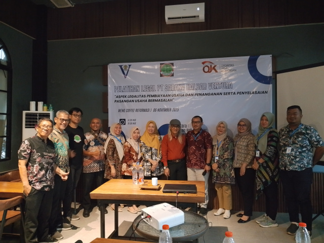 PT Sarana Kalbar Ventura berkolaborasi dengan LBH Herman Hofi Law menggelar kegiatan Pelatihan Legal dengan tema “Aspek Legalitas Pembiayaan Usaha dan Pengadaan serta Penyelesaian Pasangan Usaha Bermasalah”. Kegiatan ini berlangsung di Weng Coffee Reformesi, Kamis, 6 November 2025, dan diikuti oleh para karyawan dari berbagai divisi perusahaan.