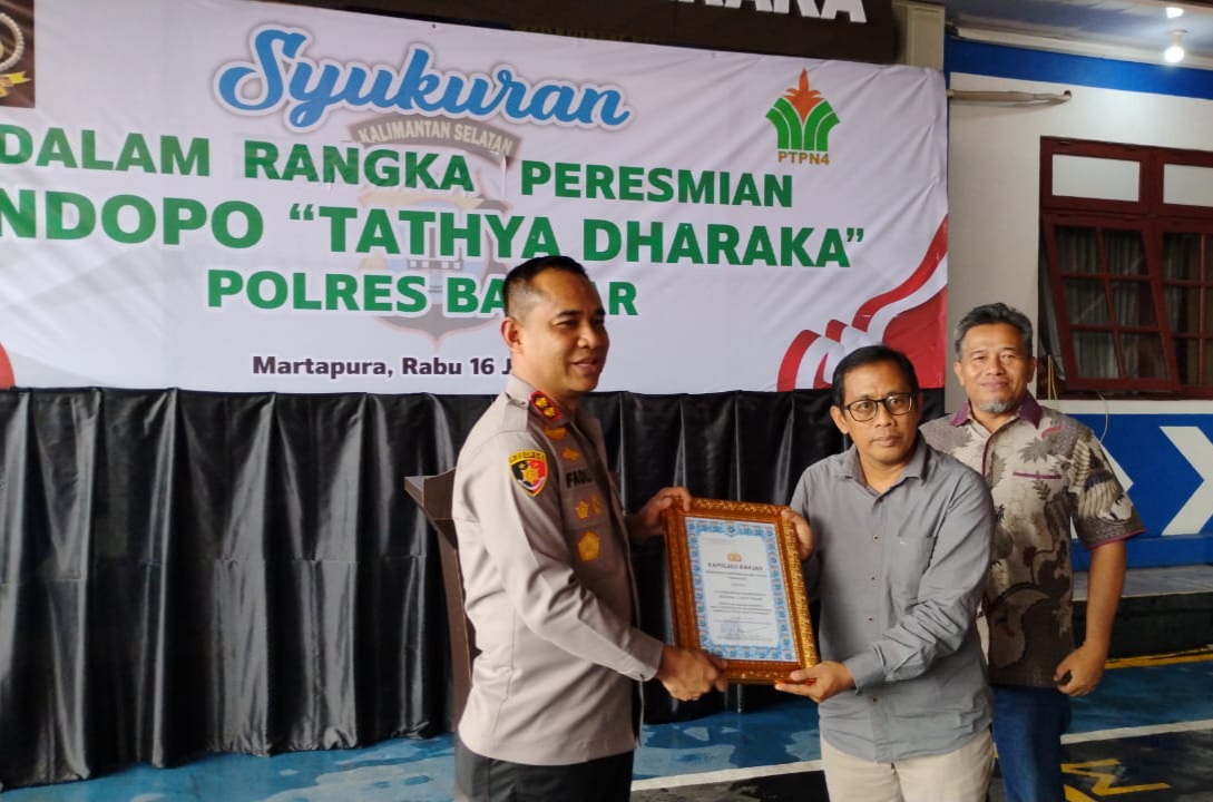 Dalam sambutannya, Kapolres Banjar menyampaikan apresiasi tinggi kepada PTPN IV Regional 5 Kebun Danau Salak atas kerja sama yang terjalin erat, termasuk kontribusi dalam pembangunan Pendopo Tathya Dharaka.