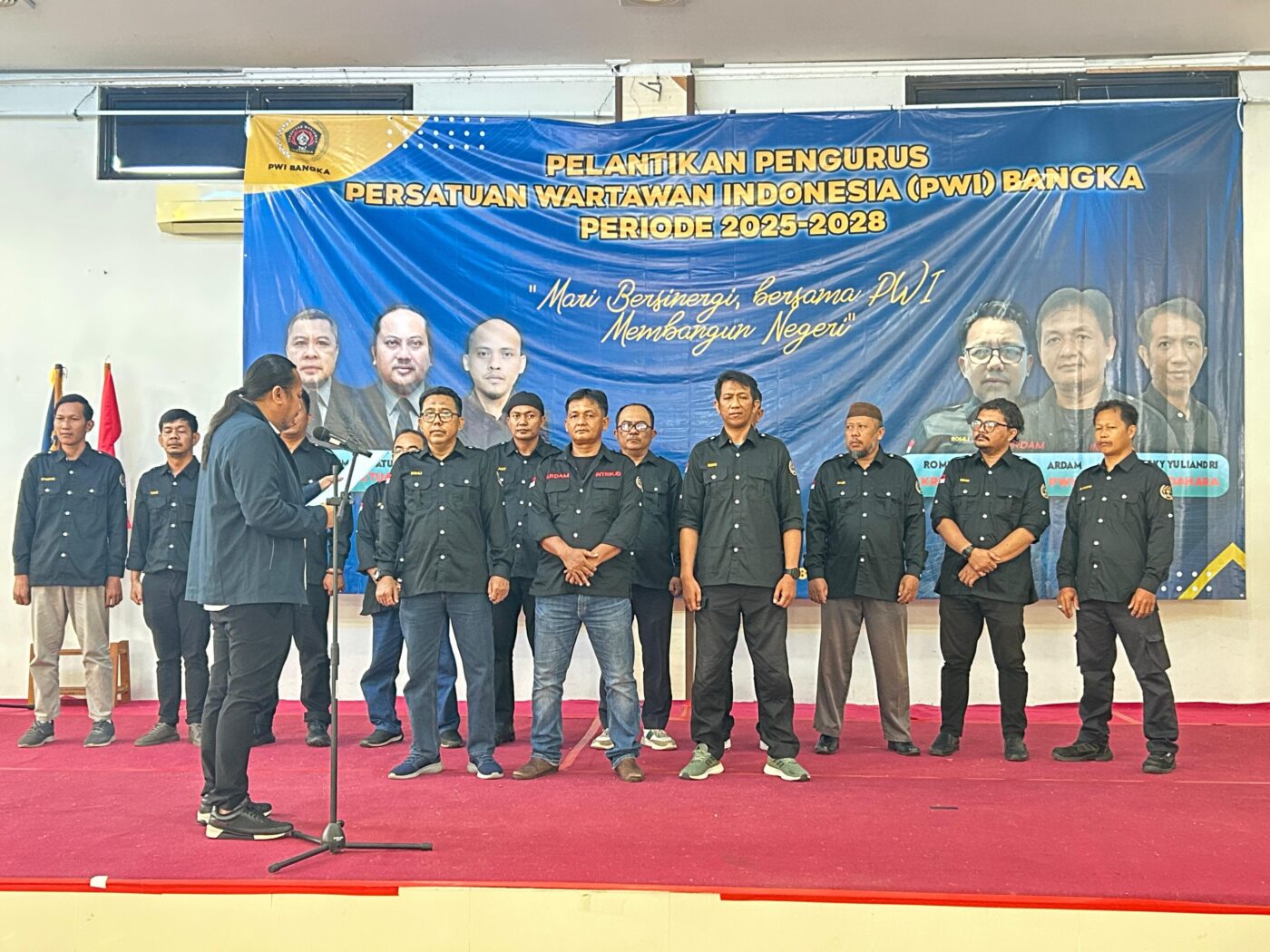 Ketua Persatuan Wartawan Indonesia (PWI) Provinsi Kepulauan Bangka Belitung (Babel), Mohammad Fathurrakhman, melantik pengurus PWI Kabupaten Bangka periode 2025–2028, di Ballroom Hotel ST12, Sungailiat, Rabu (28/5/2025) pagi.