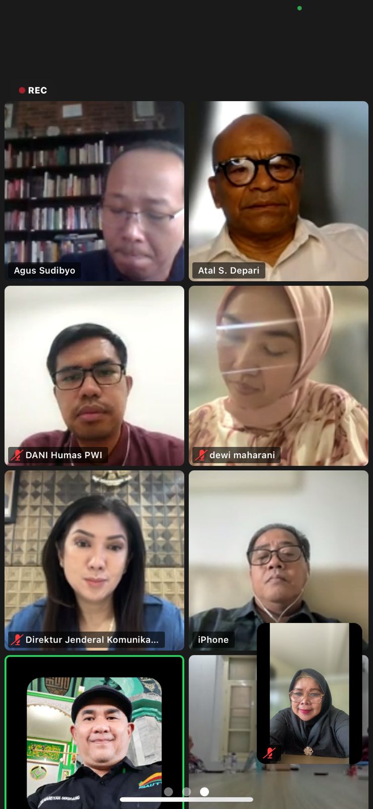 Pengurus Persatuan Wartawan Indonesia (PWI) Pusat periode 2025–2030 menggelar rapat koordinasi bersama Kementerian Komunikasi dan Digital secara virtual, Jumat (12/9/2025).