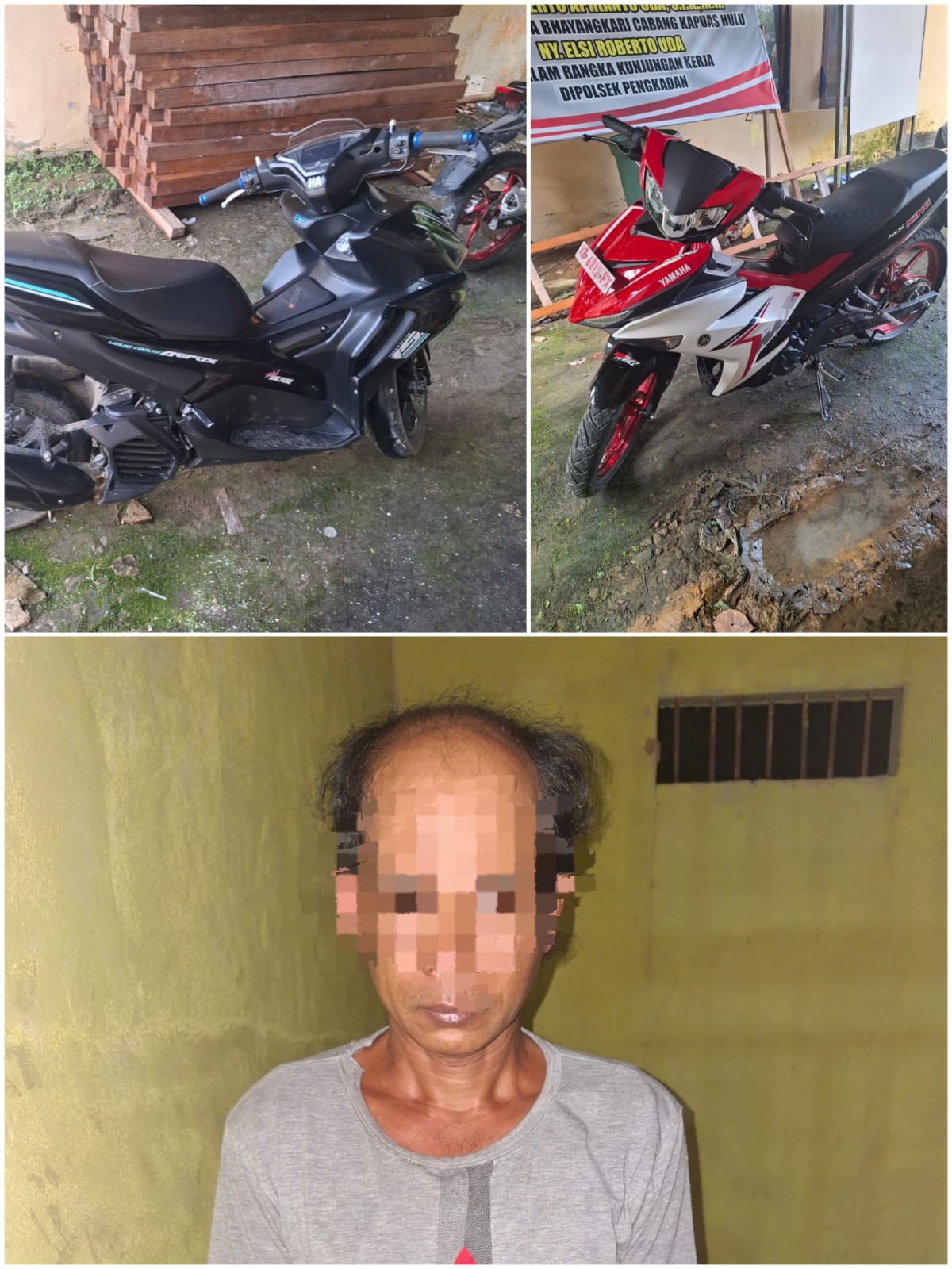 Kronologi Penangkapan, Mendapat laporan adanya tindak pidana, Tim Lidik langsung bergerak menuju lokasi di Jalan Lintas Selatan, Dusun Menendang, Desa Martadana, Kecamatan Pengkadan. Di lokasi tersebut, petugas berhasil mengamankan pelaku beserta satu unit sepeda motor Yamaha MX King.