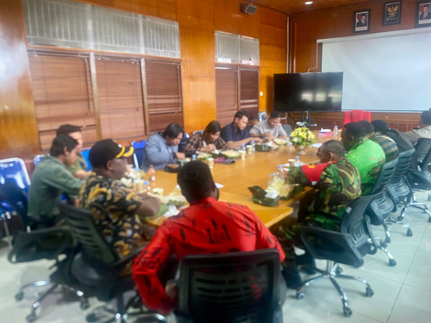 Rapat dipimpin Asisten I Setda Pegunungan Bintang, Nikolaus Uropmabin, S.IP., M.Si., dan dihadiri Asisten II Ir. Laode Jadjali, Wakapolres Kompol Dr. Nadjamuddin, Danpos Kopasgat Lettu Pas Ahmad Rifai, Kepala Distrik Oksibil Yanuarius Opki, serta perwakilan TNI dan Polri.