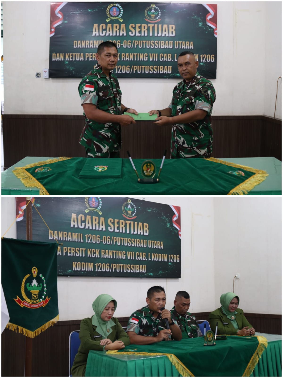 Dalam prosesi sertijab tersebut, jabatan Danramil 1206-06/Putussibau Utara resmi diserahterimakan dari pejabat lama Kapten Arm Supratno kepada pejabat baru Lettu Inf Sugianto. Acara ditandai dengan penandatanganan naskah serah terima jabatan serta pengambilan sumpah jabatan, yang disaksikan oleh Kasdim 1206/Psb beserta Wakil Ketua Persit KCK Cabang L Dim 1206/Psb, Anggota Koramil Putussibau Utara serta Persit KCK Cabang L Ranting VII Dim 1206/Psb.