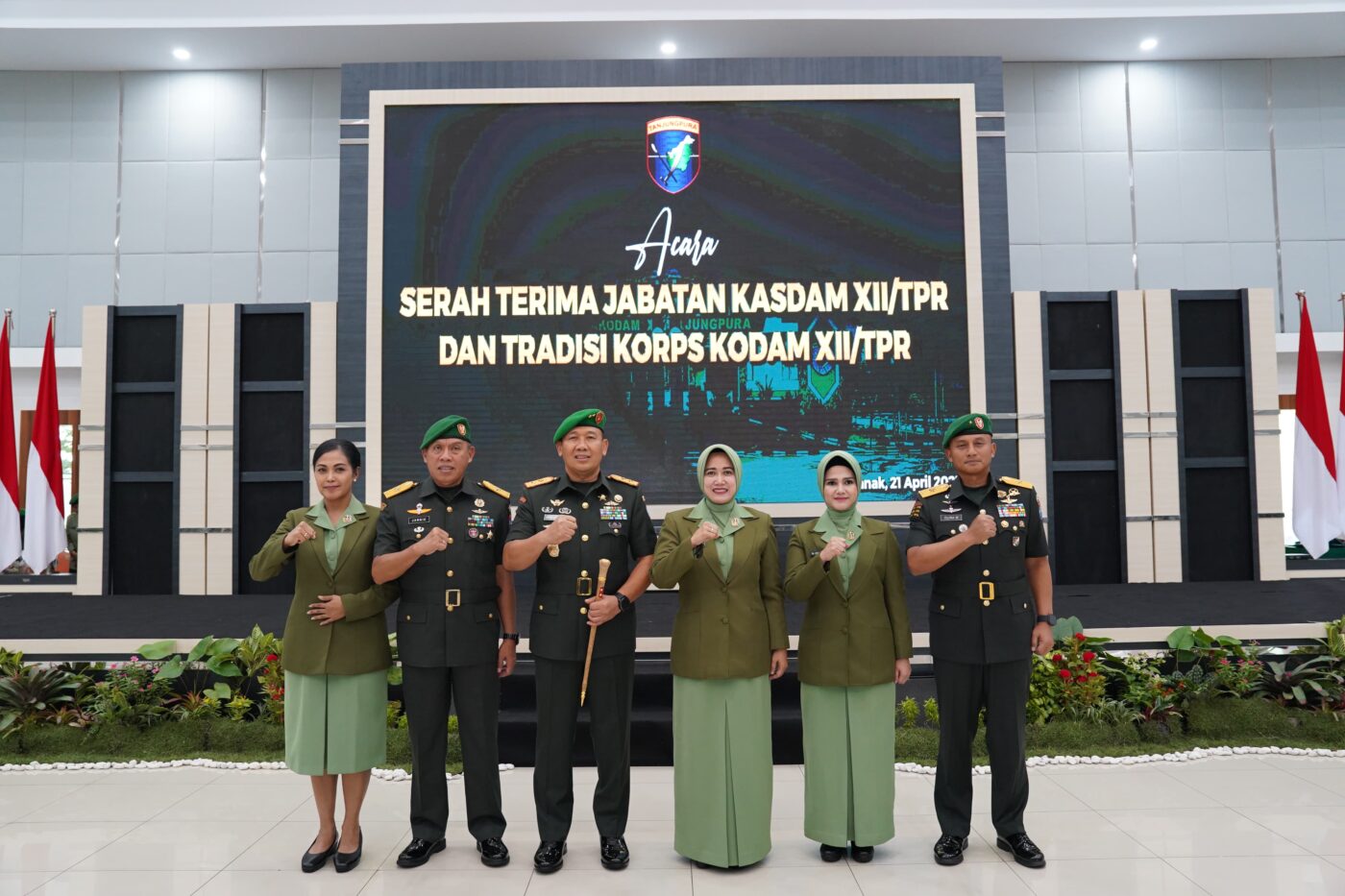 Pangdam XII/Tanjungpura, Mayjen TNI Jamallulael, S.Sos., M.Si., memimpin Serah Terima Jabatan (Sertijab) Kasdam XII/Tpr dari Brigjen TNI Jannie Aldrin Siahaan, S.E., M.B.A., kepada Brigjen TNI Putra Widyawinaya, S.H., M.P.M. Acara berlangsung di Aula Sudirman, Makodam XII/Tpr, Senin (21/4/2025).