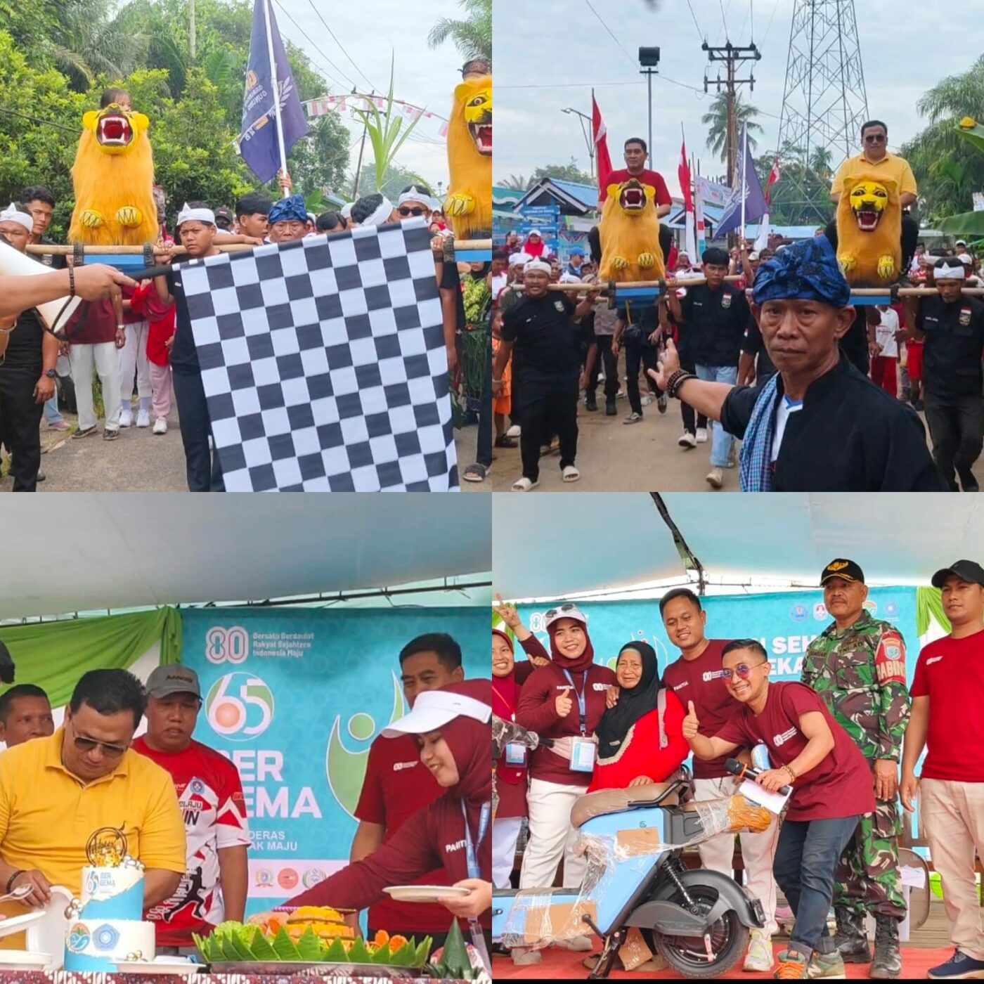 Ribuan warga Desa Sungai Deras, Kecamatan Teluk Pakedai, Kabupaten Kubu Raya, memadati jalan-jalan desa untuk mengikuti peringatan HUT Kemerdekaan RI ke-80 sekaligus HUT Desa Sungai Deras ke-65, Minggu (31/8/2025).