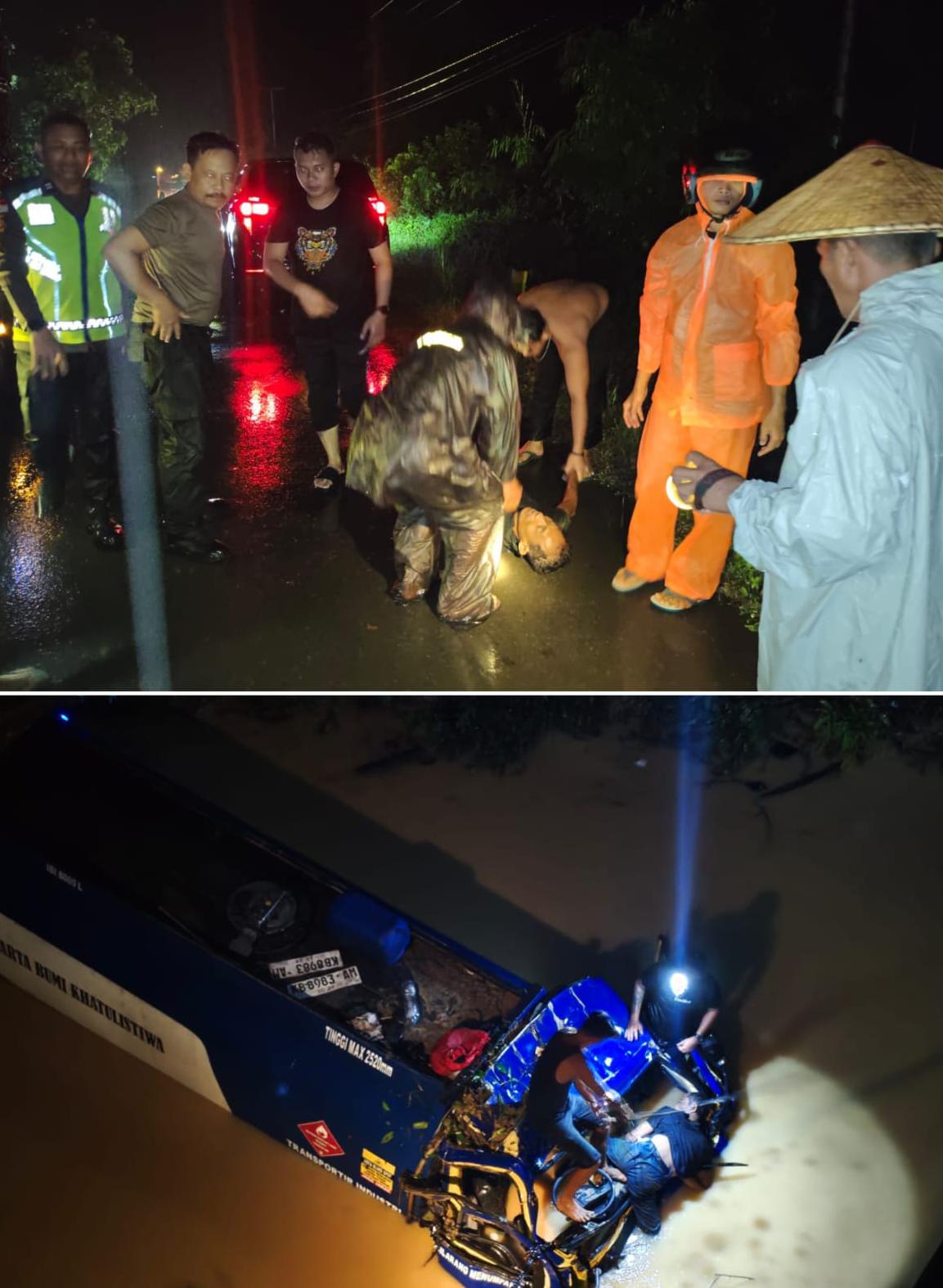 Diterangkan Iptu Jamali, “pada saat kejadian Laka Lantas tersebut Kondisi cuaca hujan lebat, penerangan jalan tidak ada serta kondisi jalan yang menikung, ” ucapnya