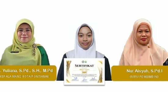 Pontianak, Media Kalbar Prestasi membanggakan kembali ditorehkan oleh MAN 2 Pontianak. Seorang siswi atas nama Alifatun Nasywa berhasil meraih Juara Terbaik 1