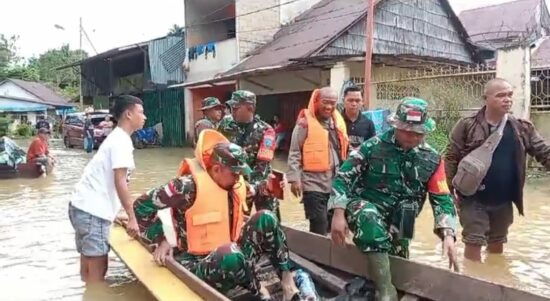 Bengkayang, Media Kalbar Memasuki musim penghujan, Komandan Kodim 1209/Bky Letkol Inf Albertinus Mariano,S.E, terjun langsung ke lokasi yang terdampak banjir di Dsn.