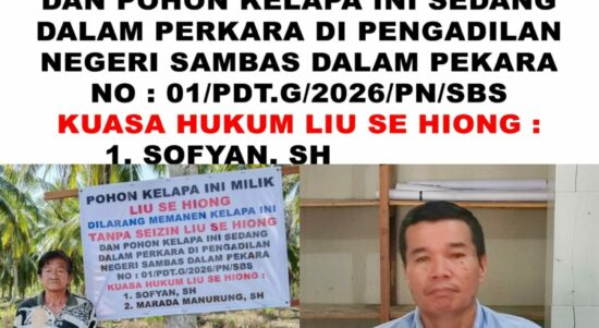 Pontianak, Media Kalbar – Kuasa hukum Liu Se Hiong menyampaikan pemberitahuan kepada aparat penegak hukum serta instansi terkait menyusul adanya sengketa hukum