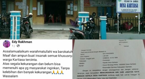 Sambas, Media Kalbar — Warga Desa Kartiasa, Kecamatan Sambas, digemparkan dengan unggahan mengejutkan dari akun Facebook pribadi milik Kepala Desa Kartiasa, Edy