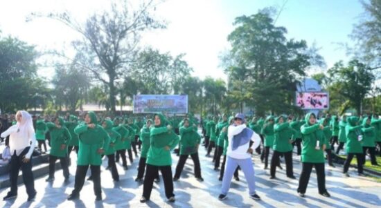 LANGSA, Media Kalbar Ratusan warga Kota Langsa memadati Lapangan Merdeka untuk mengikuti kegiatan Senam Sehat Bersama dalam rangka perayaan HUT ke-80 TNI.