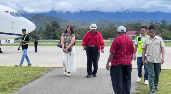 Wamena, Media Kalbar Gubernur Papua Pegunungan, Dr. (HC) John Tabo, S.E., M.BA, bersama Ibu, tiba di Bandara Wamena pada Sabtu (25/10/2025) setelah