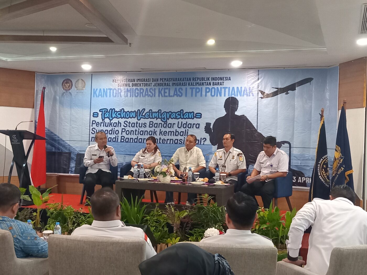 Kantor Imigrasi Kelas I TPI Pontianak menggelar Talk Show Keimigrasian yang bertema “ Perlukah Status Bandar Udara Supadio Pontianak Kembali Menjadi Bandar Udara Internasional ” yang berlangsung di Hotel Goden Tulip Pontianak, Rabu (23/4).