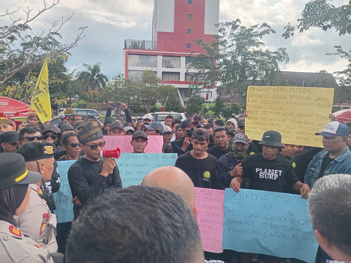 Ratusan massa dari Barisan Pemuda Melayu (BPM) Kalimantan Barat menggelar aksi unjuk rasa di dua lokasi berbeda, yakni Polda Kalbar dan Kejaksaan Tinggi Kalimantan Barat, Rabu (15/10/2025).