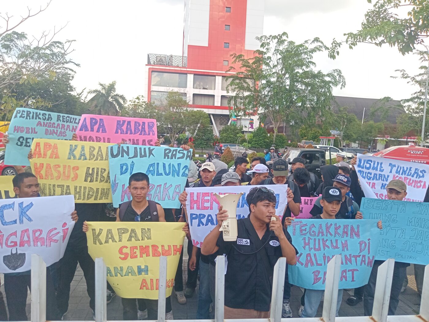Puluhan mahasiswa yang tergabung dalam Gerakan Mahasiswa Kalimantan Barat Bersatu (GMKBB) menggelar aksi demonstrasi atau unjuk rasa di Kejaksaan Tinggi Kalbar pada hari Rabu (15/10).