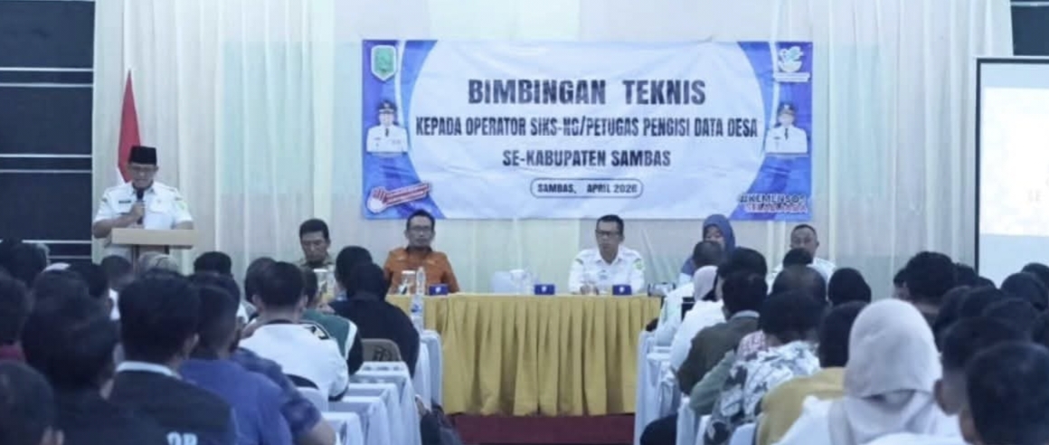 Sambas, MEDIA KALBAR – Bupati Sambas yang diwakili oleh Wakil Bupati Sambas, H. Heroaldi Djuhardi Alwi, S.T., M.T., menghadiri pembukaan kegiatan bimbingan teknis (bimtek) bagi operator SIKS-NG dan petugas pengisi data desa se-Kabupaten Sambas yang dilaksanakan di Aula Hotel Pantura Jaya Sambas, Rabu (15/4/2026).
